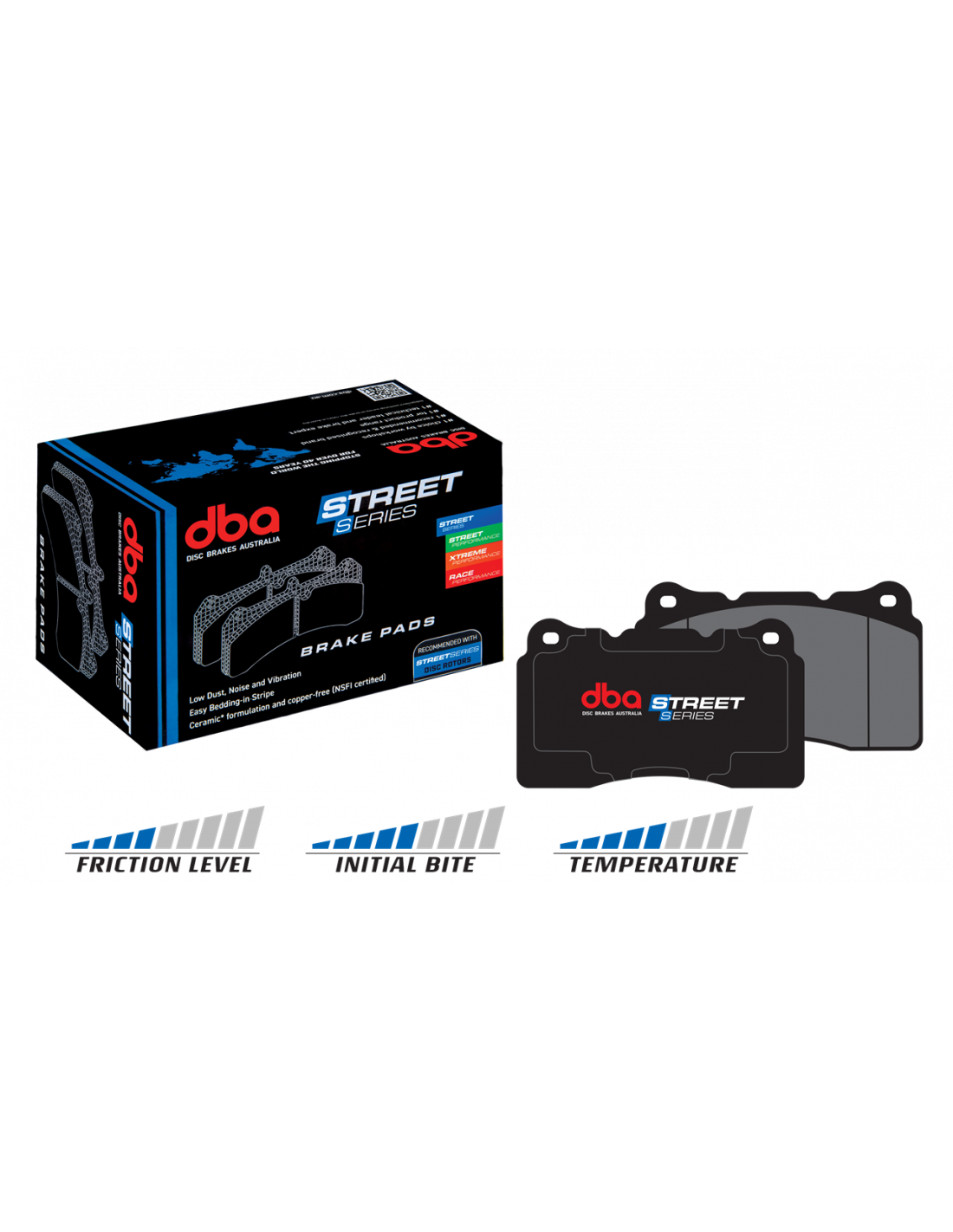 DBA recommends use with STREET SERIES plain or T2 slotted disc rotors for increased first application effectiveness and reducing bed-in time.